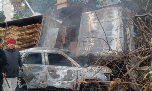 मोहब्बेवाला चौक पर बड़ा हादसा, ट्रक कार पर पलटा; आग से मची अफरातफरी