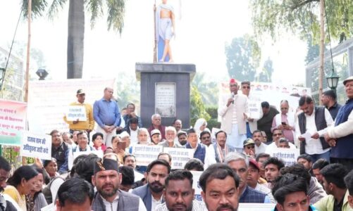मालिन बस्तियों के मालिकाना हक को लेकर INDIA गठबंधन का गांधी पार्क में धरना