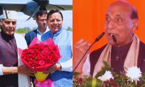 हलद्वानी में राजनाथ सिंह की जनसभा, सीएम धामी की जमकर तारीफ
