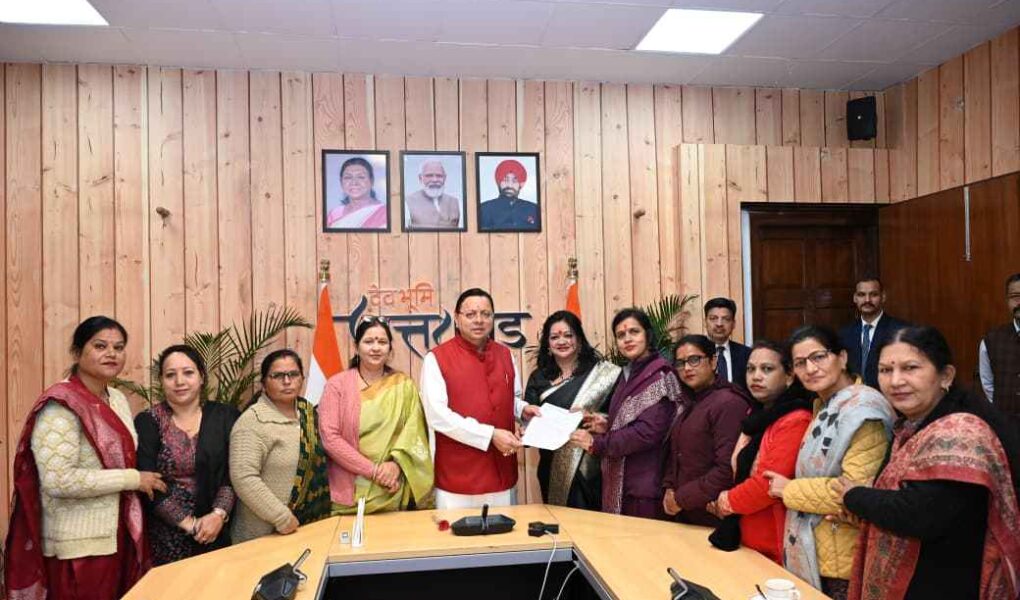 मुख्यमंत्री पुष्कर सिंह धामी से रविवार को मुख्यमंत्री आवास में आंगनबाड़ी कार्यकत्री/सेविका/ मिनी कर्मचारी संगठन के सदस्यों ने भेंट की।