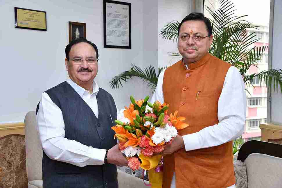 केंद्रीय मंत्री जेपी नड्डा ने मुख्यमंत्री पुष्कर सिंह धामी को हर सम्भव सहयोग के प्रति आश्वस्त किया।