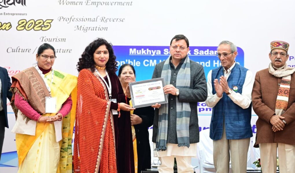 मुख्यमंत्री  पुष्कर सिंह धामी ने शनिवार को मुख्य सेवक सदन देहरादून में बिजनेस उत्तरायणी संस्था द्वारा आयोजित Manthon-2025: 5th National Leader’s Summit (Women’s Special) कार्यक्रम में प्रतिभाग किया। इस अवसर पर मुख्यमंत्री ने स्टार्टअप, आत्मनिर्भरता एवं अन्य क्षेत्रों में विशिष्ट कार्य करने वाली महिलाओं को सम्मानित किया।