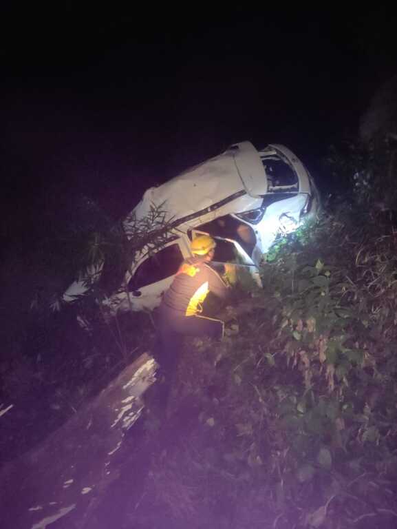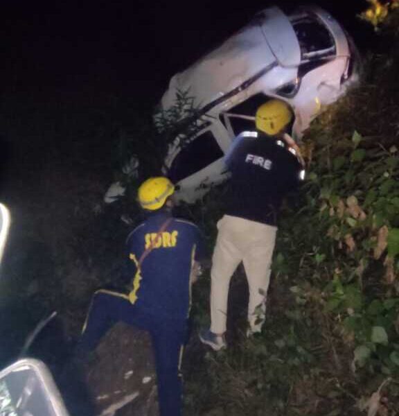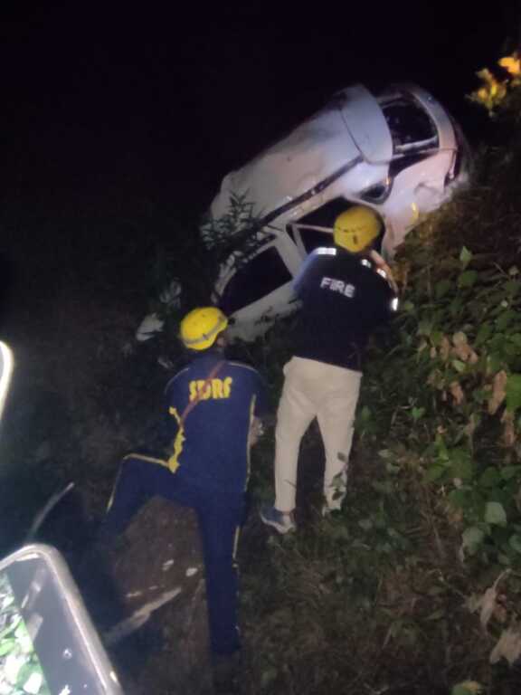 घटनास्थल पर एक टोयोटा कार लगभग 50 मीटर गहरी खाई में दुर्घटनाग्रस्त हुई थी, जिसमें चार व्यक्ति सवार थे।