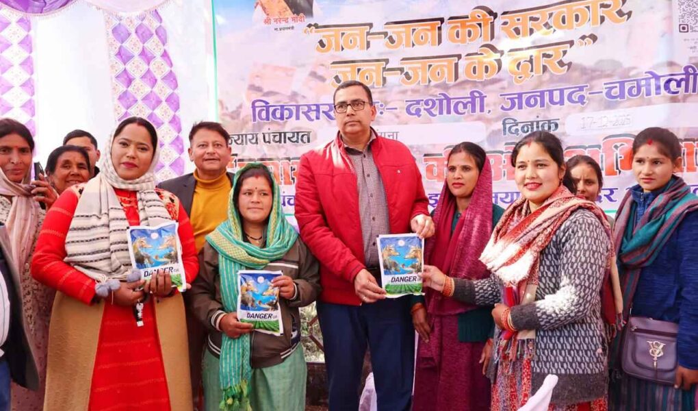 अभियान के तहत चमोली जिले में न्याय पंचायत बैरांगना में बहुउद्देशीय शिविर का आयोजन कर 23 विभागों के स्टॉल लगाकर ग्रामीणों को सरकार की जनोपयोगी योजनाओं की जानकारी दी गई। साथ इस दौरान दर्ज 181 शिकयातें एवं आवेदन पत्र प्राप्त हुए। अधिकांश शिकायतों का मौके पर निस्तारण कर शेष शिकायतों के निस्तारण के लिए विभागीय अधिकारियों को प्राथमिकता के आधार पर कार्रवाई करने के निर्देश दिए गए। मुख्य विकास अधिकारी डॉ अभिषेक त्रिपाठी की उपस्थिति में आयोजित इस शिविर में विभागीय सेवाओं से ग्रामीणों को लाभान्वित करने के साथ ही विभिन्न योजनाओं के पात्र लाभार्थियों के लिए आवेदन करने की सुविधा भी उपलब्ध कराई गई। साथ ही ग्रामीणों की स्वास्थ्य जांच कर निशुल्क दवाइयों का वितरण भी किया गया।