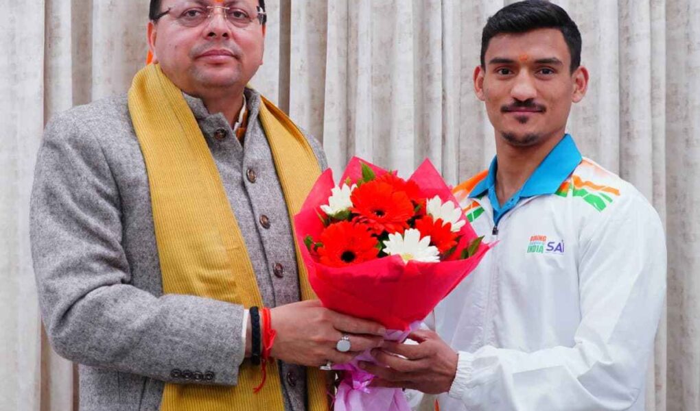 वर्ल्ड बॉक्सिंग कप विजेता पवन बर्त्वाल ने सीएम धामी से की शिष्टाचार भेंट
